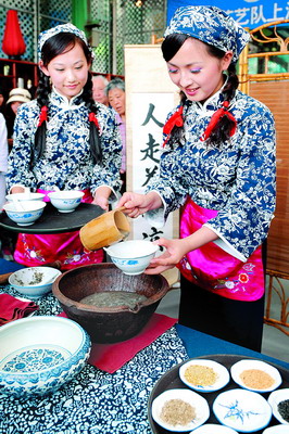 南昌大学学生在世博园表演茶艺,传播中国茶文化。蒋林摄