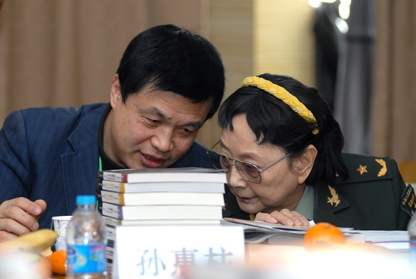 著名表演艺术家王晓棠将军与上海戏剧学院副院长孙惠柱交谈