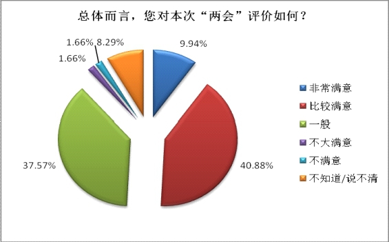 总体而言,上海市民对本次“两会”的成功举办给予了肯定,其中表示“非常满意”或“比较满意”的公众占50.82%。