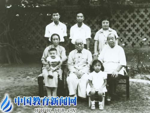 1958年,在北大燕南园的全家福(前排中为汤用彤)。