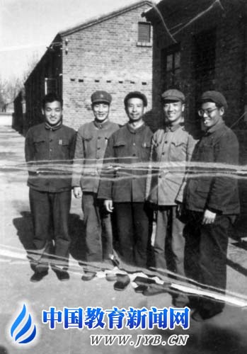 1970年汤一介(左三)在鲤鱼洲五七干校