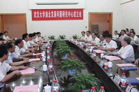 7月5日上午,由武汉大学与湖北省共同组建的武汉大学湖北发展问题研究中心举行成立会,并举行了顾问、副主任、研究员聘任仪式。