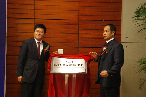 随后,党委副书记王利明同汤兆志副司长一起为“中关村版权争议调解中心”揭牌。