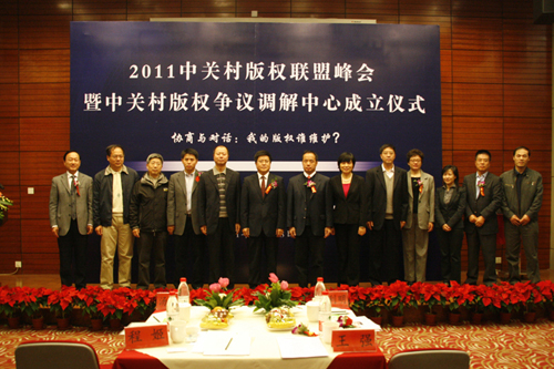 10月28日上午,由中关村版权联盟和中国人民大学国家版权贸易基地共同主办的“2011中关村版权联盟峰会暨中关村版权争议调解中心成立仪式”在中国人民大学隆重举行。中国人民大学党委副书记兼副校长王利明出席峰会并为中关村版权争议调解中心揭牌。国家版权局版权管理司副司长汤兆志、中关村科技园区管理委员会自主创新能力建设处副处长程姬、北京市海淀区文化委员会副主任王强等有关部门的领导出席仪式并表示祝贺。