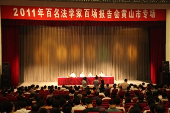 根据2011年“百名法学家百场报告会”法治宣讲活动(以下简称“双百”活动)实施方案和工作安排,安徽省“双百”活动由全国“双百”活动组委会统一组织。2011年9月15日至17日,以中国法学副会长周成奎为团长,国务院法制办副主任袁曙宏、最高人民法院副院长江必新为副团长,“双百”活动组委会办公室主任、中国法学会办公室主任刘剑为秘书长的“双百”活动报告团赴安徽进行宣讲。活动收到很好的效果,取得了圆满成功。