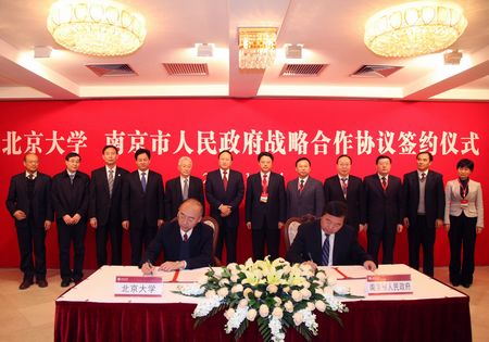 吴志攀、季建业代表双方签署了“北京大学、南京市人民政府战略合作协议”,双方还签署了“南京市与北京大学干部人才交流合作协议”。此次市校战略合作协议的签署,将推进双方在重大项目、创业就业、人才交流培养、国际科技交流等领域展开全方位合作,推进创新平台建设,并有利于构建双方长效合作的工作机制。