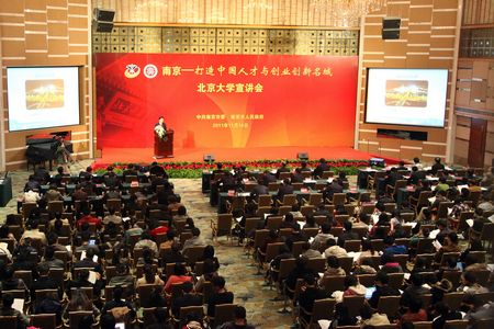 签约仪式前,“南京市人才与创业创新宣讲会”在英杰交流中心阳光大厅举行。杨卫泽向北大师生作了题为《南京:加速崛起的中国人才与创业创新名城》的宣讲。宣讲会由校党委常务副书记、副校长张彦主持。