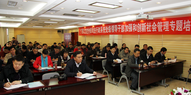 此次培训共有来自广西壮族自治区司法厅、地方司法局、监狱劳教单位的60多名处级领导干部参加。培训期间,承办单位将邀请校内外知名专家教授就法治建设、社会管理创新、司法体制改革、突发事件应对、司法心理、领导艺术等方面问题进行授课,并组织参观西柏坡革命圣地以接受传统教育,通过增加教学互动力度、增加实践学习力度、增加小组讨论力度等教育模式,丰富教学形式,优化学习方法,以期取得切有实效的培训效果。
