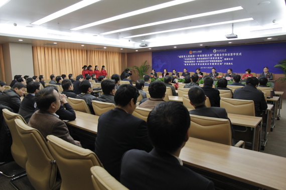 11月28日,“咸阳市人民政府——中央财经大学”战略合作协议签字仪式、“中央财经大学——陕西省咸阳市干部培训基地”、“陕西省咸阳市——中央财经大学产学研实践基地”揭牌仪式暨“咸阳市党政干部金融知识专题研讨班”开班典礼在中央财经大学学术会堂隆重举行。中央财经大学副校长梁勇、咸阳市人民政府副市长李聚合、咸阳市委组织部副部长兼人才办主任郭来道、咸阳市公务员局副局长曹建民、咸阳市委组织部干训科科长张蒙、学校办公室主任郭有成、科研处副处长张晓红、学生处副处长蒋西河、培训学院副院长蔡如海出席了仪式,同时到场的还有培训学院的老师及培训班全体学员。典礼由学校办公室主任郭有成主持。