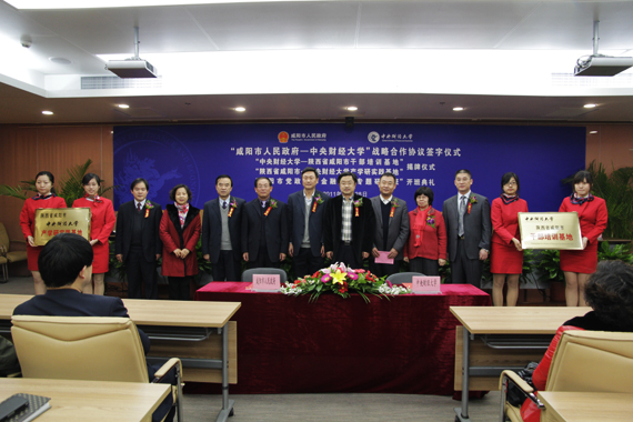 梁勇副校长和李聚合副市长分别代表中央财经大学和咸阳市人民政府签署战略合作协议,并为“中央财经大学——陕西省咸阳市干部培训基地”、“陕西省咸阳市——中央财经大学产学研实践基地”揭牌。