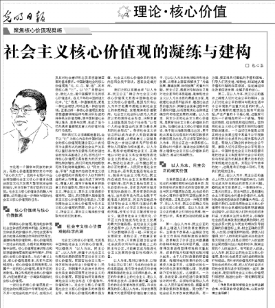 毋庸置疑,“如何凝练社会主义核心价值观”已成为当前乃至今后很长一段时期内理论界关注和讨论的学术热点。特别是在由光明日报发起并推动的“社会主义核心价值观凝练”大讨论中,学界参与广泛、讨论深入,但学术分歧也存在。