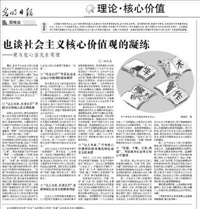 理论界关于社会主义核心价值观的表述仍处于讨论、争鸣阶段