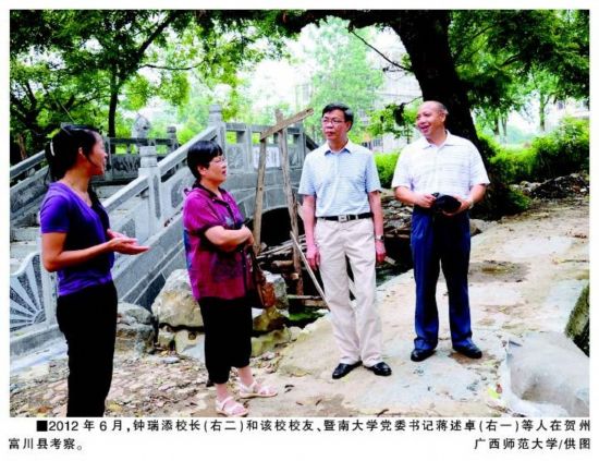 钟瑞添:近些年,学校开始思考人文社科如何服务地方经济社会发展。在资政方面,我个人的一个观点是:马克思主义不仅要中国化,而且还需要广西化。如果说国家发展的顶层设计和重大理论创新主要由中央一级的高层理论专家来解决,那么运用马克思主义解读区域化的具体问题,所有的社会科学工作者都大有可为。广西的人文社科学者必须实实在在解决广西经济社会发展中的问题。对于育人,我的观点是:师范院校不仅要培养学生,还应向社会辐射。反映到人文社科研究上,我校一方面做一些与当地文化积累相关的课题,如临桂文化大典、贺州文化大典、新广西通史等。同时,通过科研管理政策引导,鼓励人文社科研究者走进社会,到各地讲坛普及社科知识。