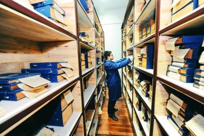 3月13日,在陕西省西安碑林博物馆,古籍库管理员在整理古籍。陕西省人民政府日前通过网络对《陕西省珍贵古籍名录》的首批入选书目进行公示。为有效加强珍贵古籍的保护力度,陕西省自2011年开始正式启动《陕西省珍贵古籍名录》申报工作,截至2012年初,陕西省29家古籍存藏单位申报了1092部古籍。经陕西省古籍保护中心初审、专家组复审和陕西省古籍保护专家委员会表决,共有409部古籍入选第一批《陕西省珍贵古籍名录》。 新华社记者 丁海涛摄