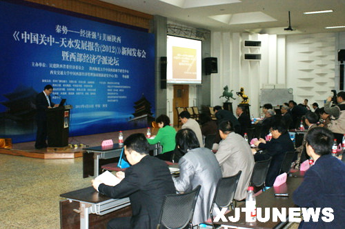 4月24日上午,西安交大管理学院举行“秦势——经济强与美丽陕西”暨西部经济学派论坛、《中国关中-天水发展报告(2012)》和《2013中国社会管理发展报告》新闻发布会。