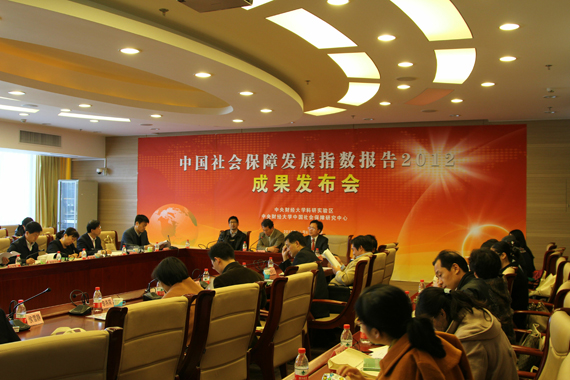 11月6日下午,“中国社会保障发展指数报告2012成果发布会”在中央财经大学学术会堂召开。在中央财经大学科研实验区计划支持下,我国第三部社会保障发展指数研究报告——《中国社会保障发展指数报告2012》出版发行。2011年11月10日与2013年3月29日,《中国社会保障发展指数报告2010》与《中国社会保障发展指数报告2011》的研究成果相继发布。本次会议由中央财经大学中国社会保障研究中心组织召开,中心主任褚福灵教授介绍了研究成果。