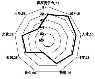 我国结构竞争力失衡,社会与环境是国家竞争力的短板所在。从上文可以看出,我国经济、人才与科技三个分项竞争力优势突出,经济竞争力已进入十强,人才竞争力、科技竞争力已进入最具竞争力之列,政府、金融、文化三个分项竞争力也已处于较具竞争力之列,但是社会竞争力与环境竞争力仅处于竞争力一般水平。