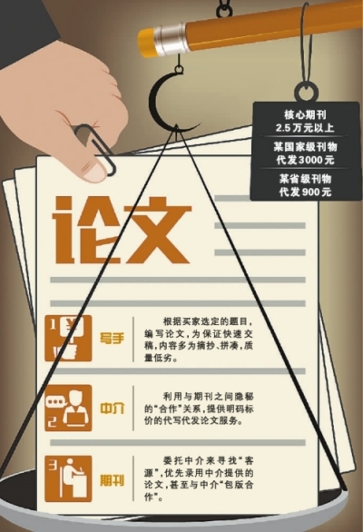 交纳数百元乃至上千元,就能在期刊上发表一篇论文,甚至论文的撰写都可以有人代笔。这在高校学生中早已是公开的秘密。多年前,就有研究报告称,我国论文买卖已形成产业,规模达10亿多元。