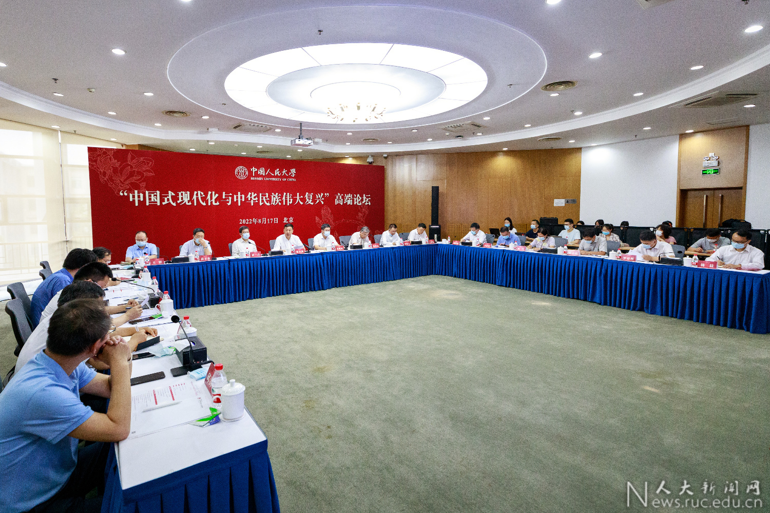 8月17日上午,中国人民大学举办“中国式现代化与中华民族伟大复兴”高端论坛,学校党委书记张东刚、中央党校(国家行政学院)副校(院)长龚维斌、中央党史与文献研究院副院长黄一兵、教育部社会科学司司长徐青森出席论坛并致辞。