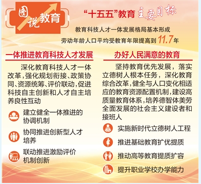 纲要共分为18篇。在第一篇“奋力开创中国式现代化建设新局面”第三章“主要目标”中提出,教育科技人才一体发展格局基本形成。劳动年龄人口平均受教育年限提高到11.7年。